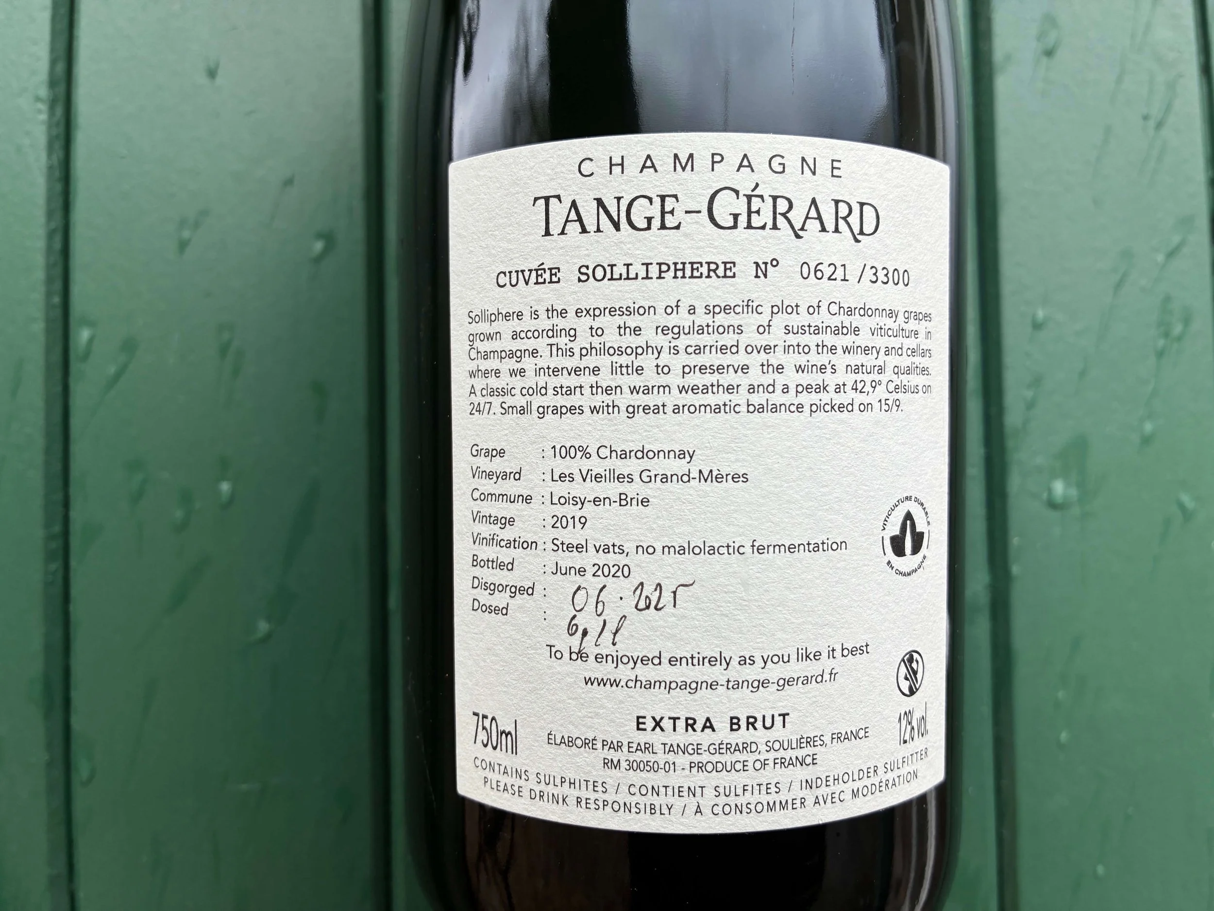 The date and dosage are both written on the backlabel of your bottle with the unique, consecutive number of this bottle. You will find a summary of all disgorgements below the button “factsheet”.