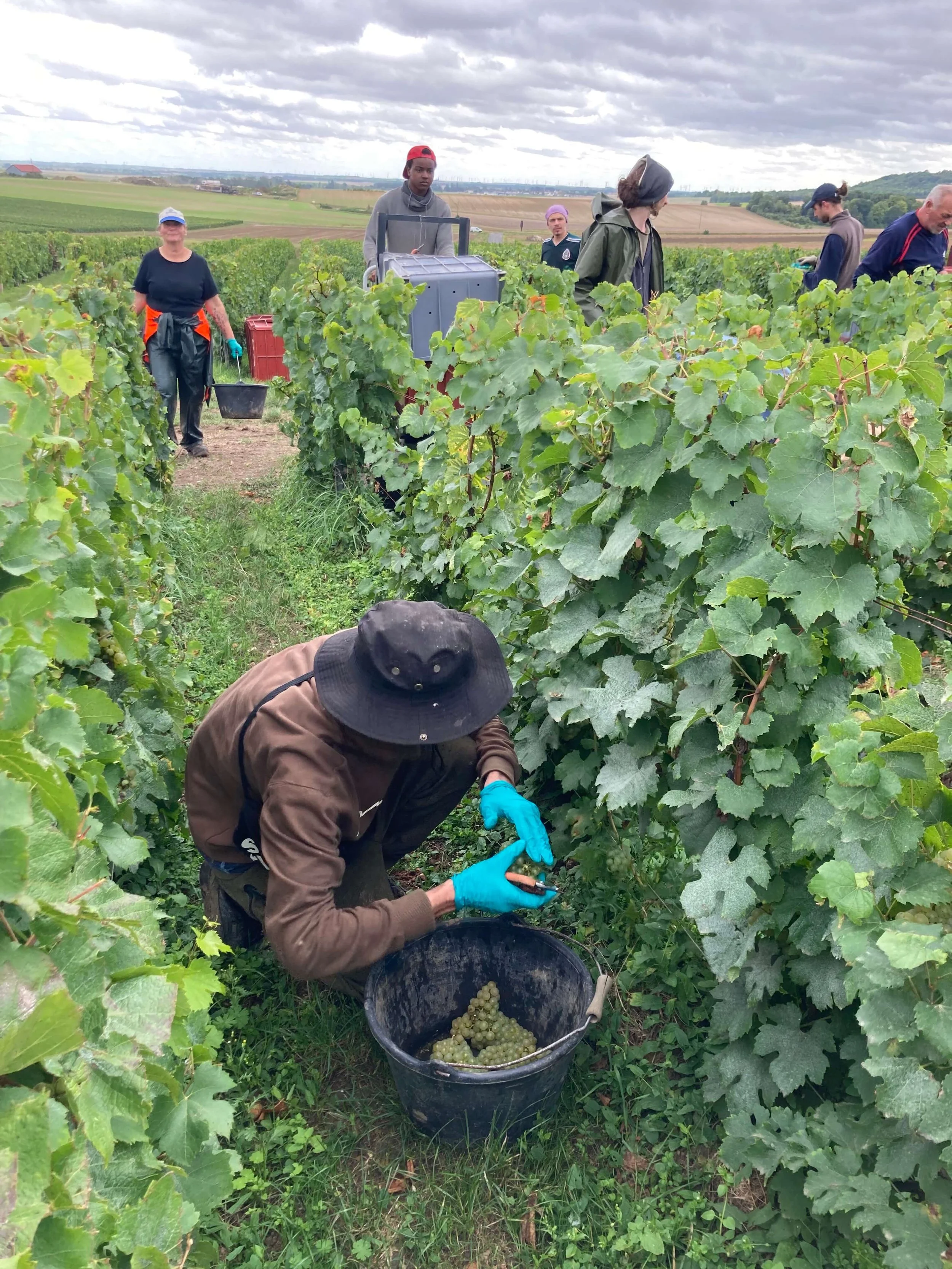 Les vendanges sont terminées chez les Tange-Gérard. Conclusion : des grappes d’une maturité jamais vue ici mais peu de kilos. Une autre première est d‘avoir terminé la cueillette le 3 septembre. C’est tôt en Champagne. Fort probablement, cette année va rejoindre les précédentes pour terminer comme l’année la plus chaude jamais mesurée. Pendant nos 5 jours de cueillette, 16 personnes se sont délicatement occupés des 24 tonnes de grappes magnifiques. Actuellement, ces moûts bien concentrés en sucres se transforment tranquillement en vin. Un début assez prometteur pour nos futurs champagnes.